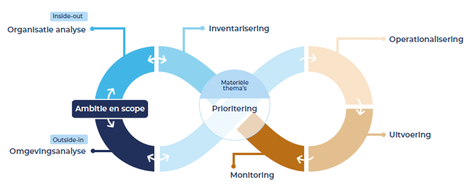 Vertrekpunt van de CSRD richtlijn is de zogeheten dubbele materialiteitsanalyse, op basis waarvan wordt bepaald wat als ‘materieel’ geldt voor uw organisatie. Deze mate van materialiteit bepaalt vervolgens op welke van de 1.000+ parameters uw organisatie dient te rapporteren over de strategie, het beleid, de impact, risico’s, kansen en de doelstellingen. Hieruit volgt een jaarlijkse rapportage over de voortgang op de doelstellingen.