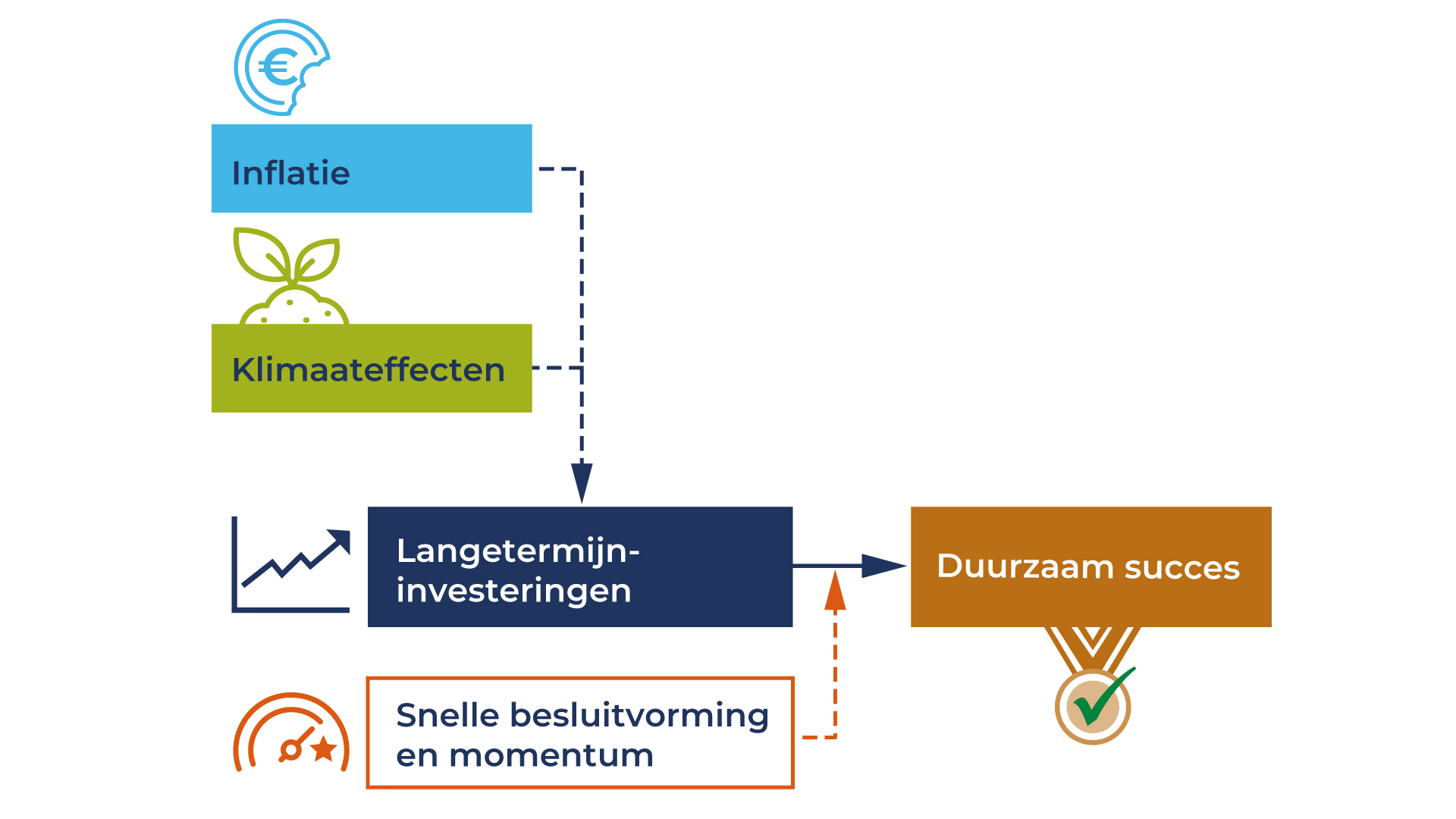 Ons advies: besteed aandacht aan innovatie, productiviteitsverbetering en langetermijninvesteringen gecorrigeerd voor inflatie en klimaateffecten. Versnel de besluitvorming en vermijd verstarring.