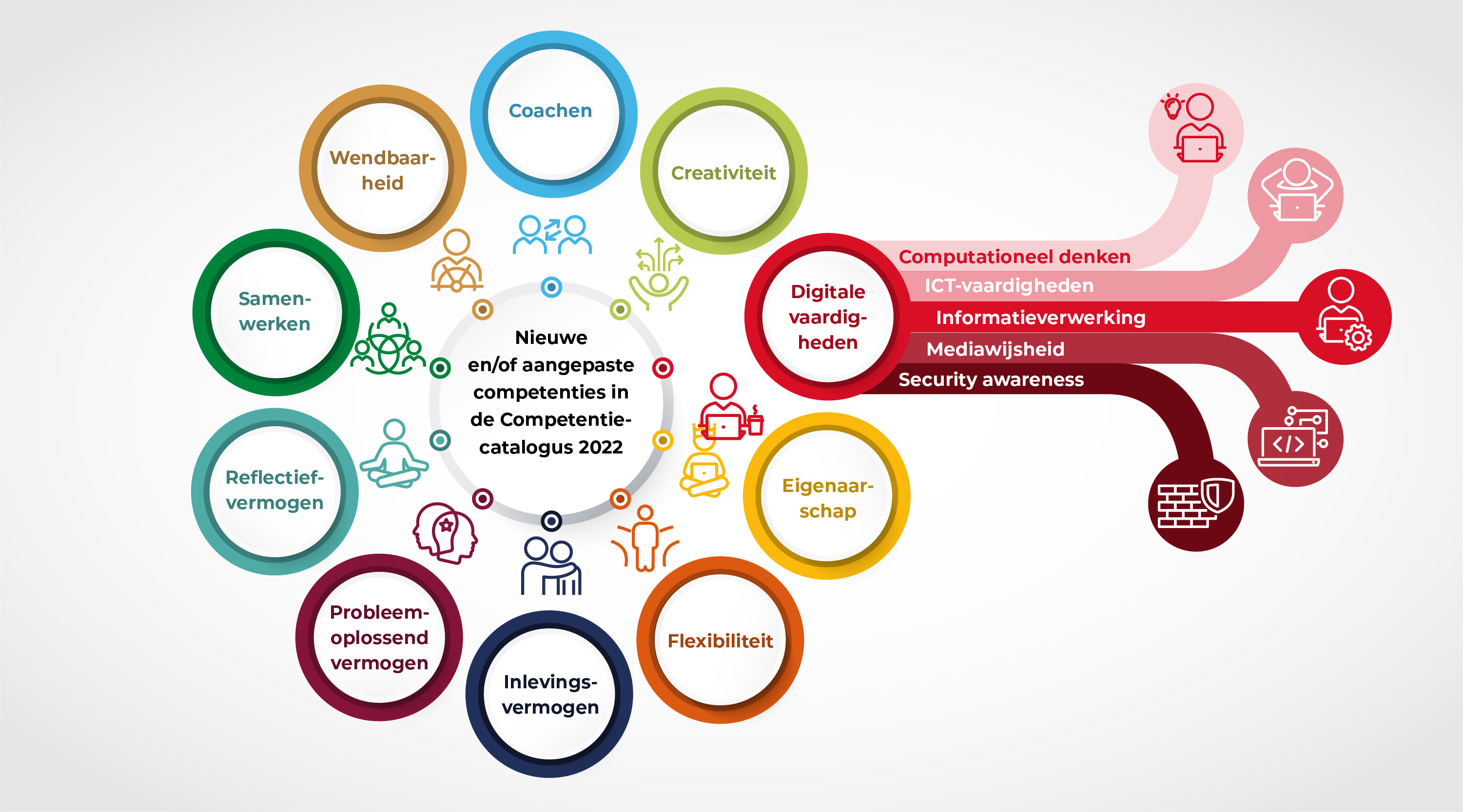 Vanaf vandaag is de herziene competentiecatalogus verkrijgbaar, uitgebreid met tien competenties rond Future Skills. De uitgave sluit daarmee naadloos aan op nieuwe trends rond De Toekomst van Werk; het denken in rollen en competenties en de transitie van beoordelings- naar ontwikkelgesprekken.