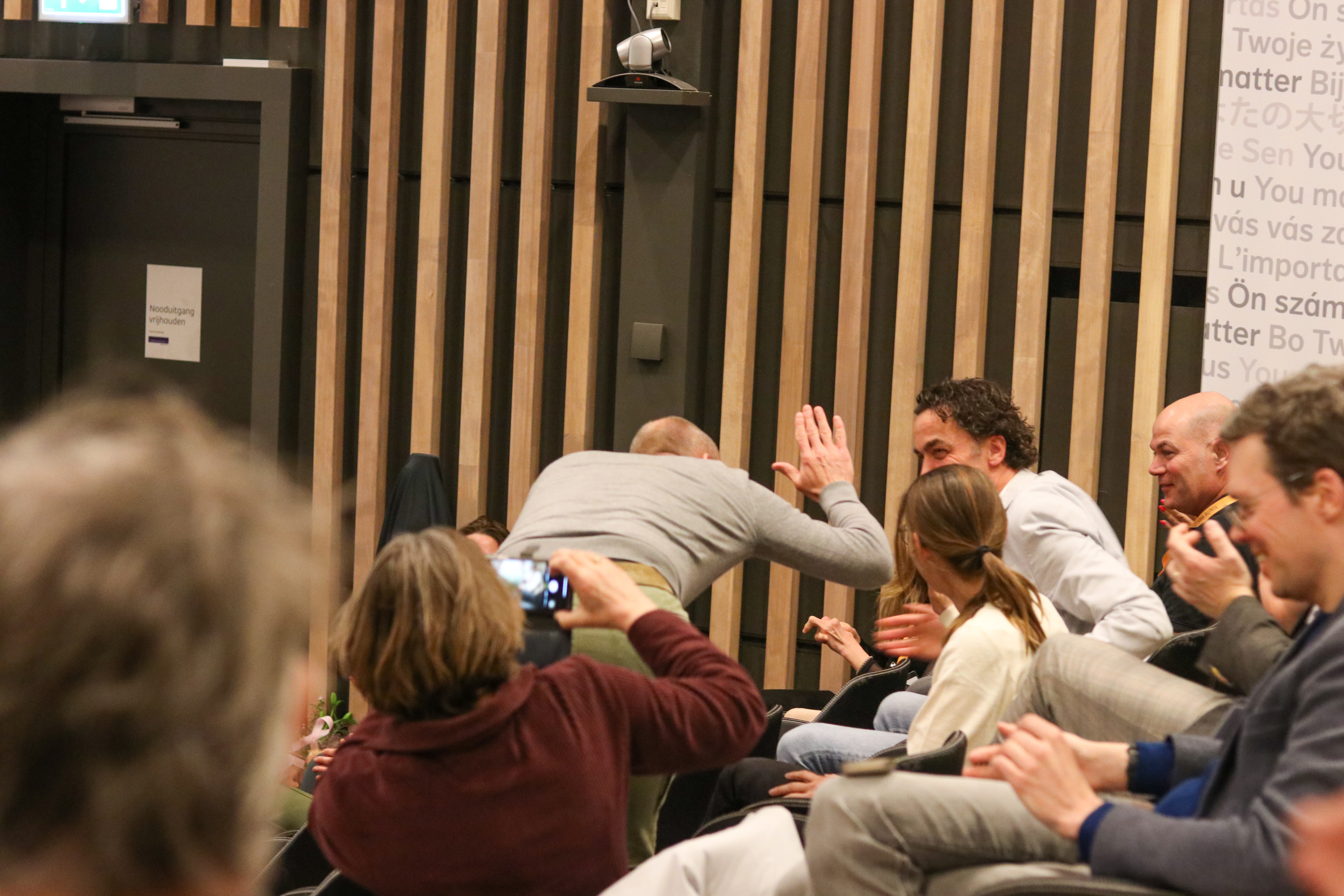 De award werd uitgereikt door Guusje ter Horst, aanjager van het programma ‘Doe Onbeperkt Mee’ van het Ministerie van VWS. “Ik vind het belangrijk dat onderwijsinstellingen zich inspannen om te zorgen dat mensen met een hbo- of universitaire opleiding én een beperking goed aan het werk komen. Ik mag vandaag een prijs uitreiken aan een onderwijsinstelling die dat op een hele goede manier doet.”